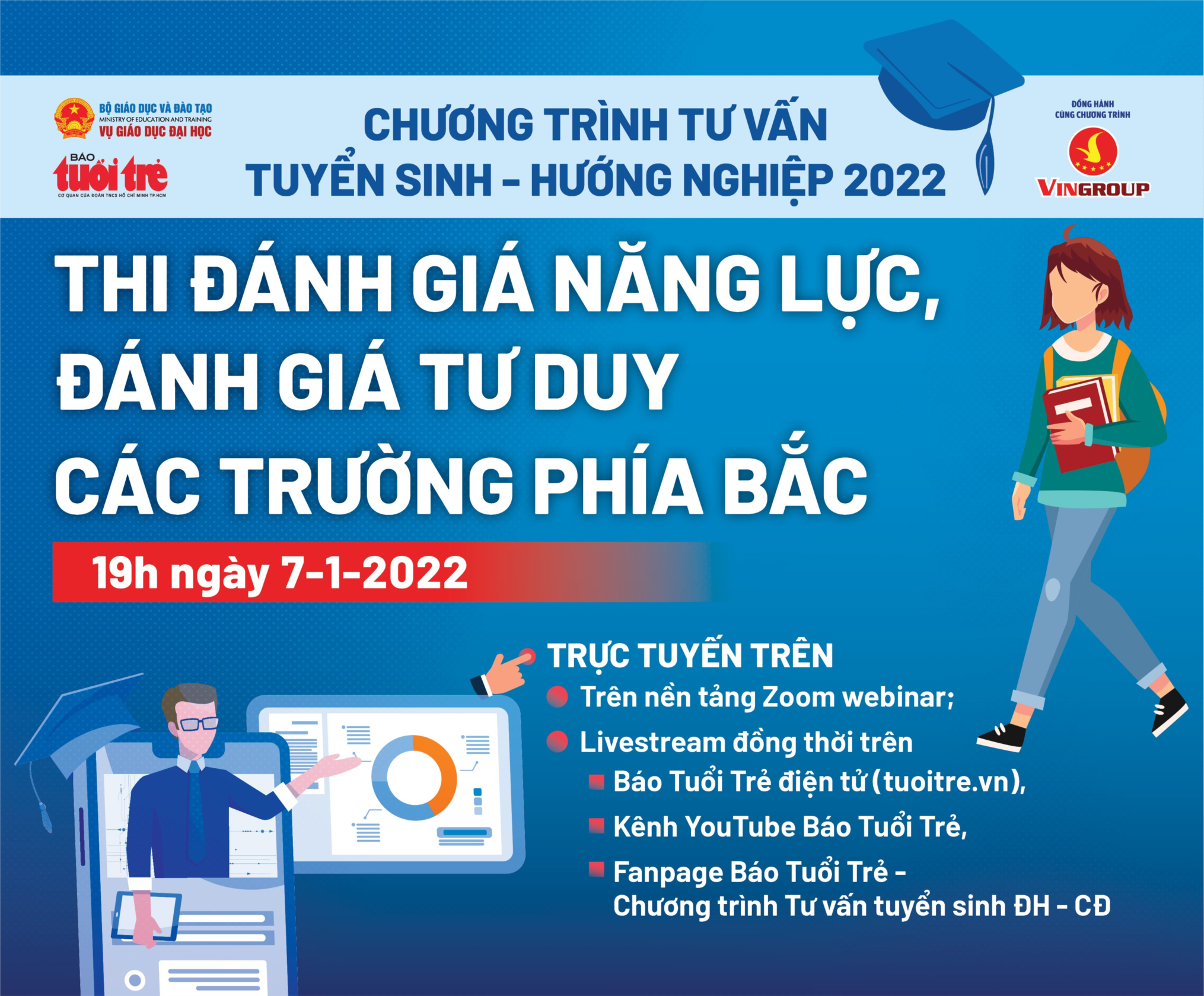 Báo Tuổi Trẻ đã thông tin chi tiết về chương trình Webinar số 1 tại đây: https://tuoitre.vn/thi-va-su-dung-ket-qua-thi-danh-gia-nang-luc-danh-gia-tu-duy-cua-cac-truong-phia-bac-the-nao-20220105000109279.htm