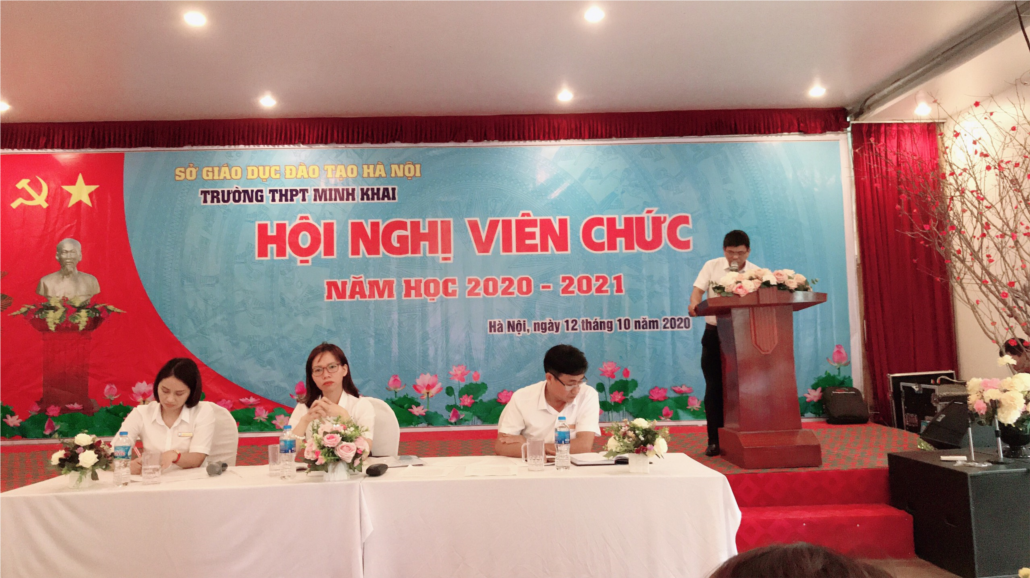 Nhằm đánh giá và tổng kết những kết quả đã đạt được trong năm học 2019-2020 và đề ra phương hướng nhiệm vụ năm học 2020-2021. Sáng nay 12/10/2020, trường THPT Minh Khai long trọng tổ chức Hội nghị cán bộ, công chức, viên chức và người lao động (CBCCVC) năm học 2020-2021. Dự và trụ trì hội nghị có bà Trần Thị Thủy- Bí thư chi bộ, Hiệu trưởng nhà trường